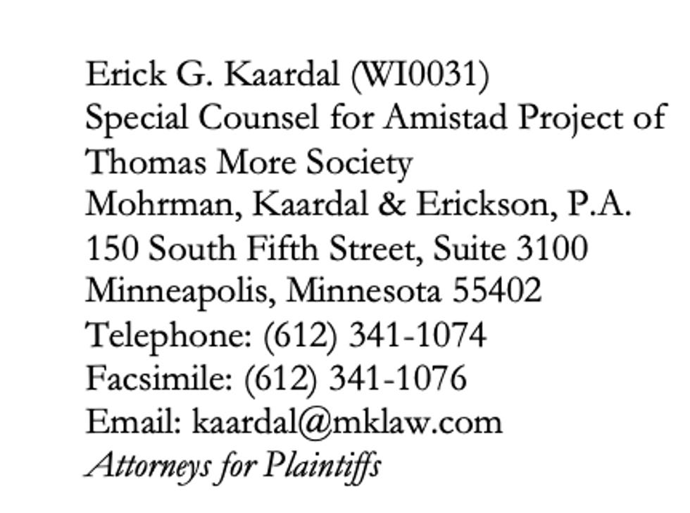 Anyway, having established that courts are forbidden from determining whether there has been a violation of state election law, Mr. Kaardal goes on to lay out 75 pages of alleged violations of state election law. Which the court has no jurisdiction to hear, according to Erick Kaardal.