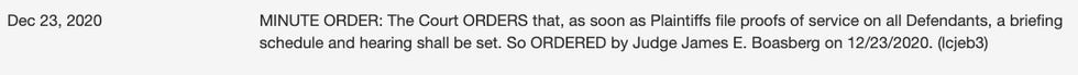 Yeah, Judge James Boasberg is going to get right on that, fellas. Just as soon as you prove you successfully served THE ELECTORAL COLLEGE. Lotsa luck with that one!