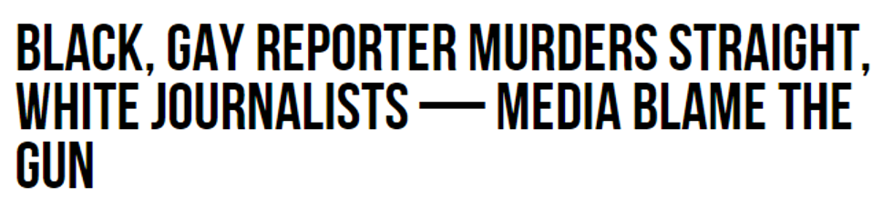 Wednesday's news was awful. Alison Parker and Adam Ward, a reporter and a cameraman with WDBJ-TV in Roanoke, Virginia, were murdered in cold blood, on television, for reasons we don't fully know yet. The shooter, Vester Lee Flanagan, is dead now, by his own hand. We've already touched on how, for wingnuts without fully formed brains (looking directly at the men who suck Dead Breitbart's corpse dick for a living, on the Breitbart website), the case is SOLVED, glory hallelujah, because the perp was black. Obviously, this is the beginning of the Race War. Obviously.