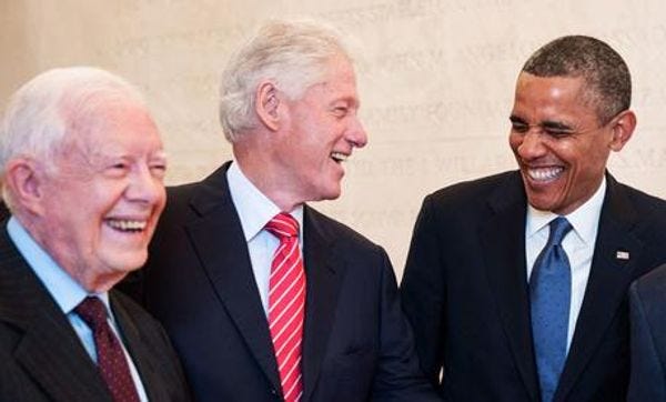 We'd also like to note that the gentleman in the middle is William Jefferson Clinton, so those of you who submitted captions identifying him as Vice President Joe Biden wrote bad captions, and you should feel bad.