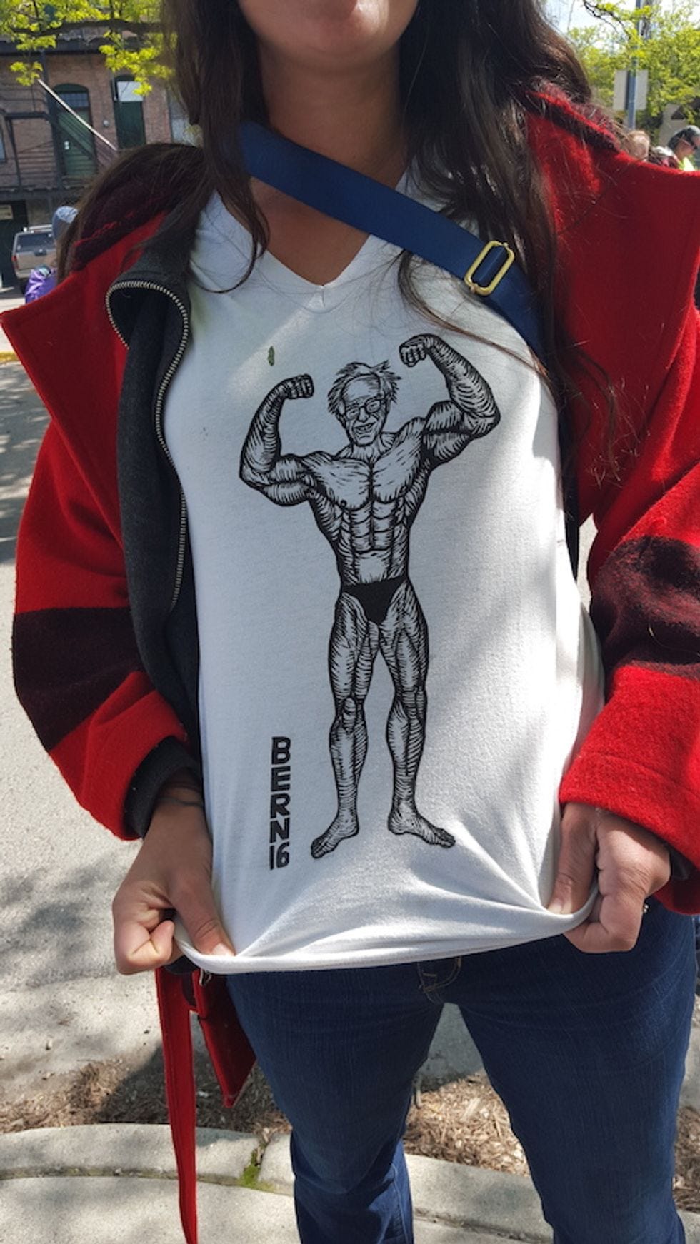 Hey, it is my stepson Keifer in his AUTHENTIC (-ally illegal) Wonkette Bernie shirt!