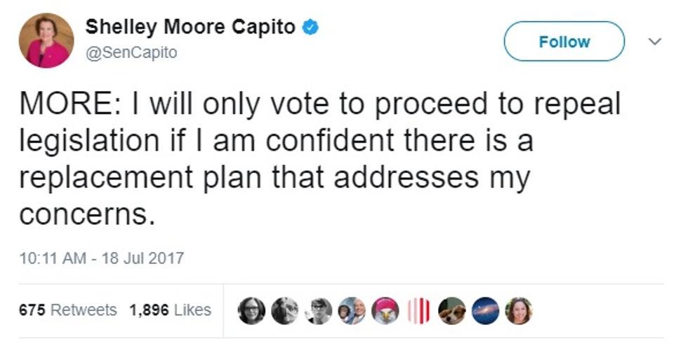 One of the biggest disappointments was West Virginia's Shelley Moore Capito, who Tweeted just a week ago: