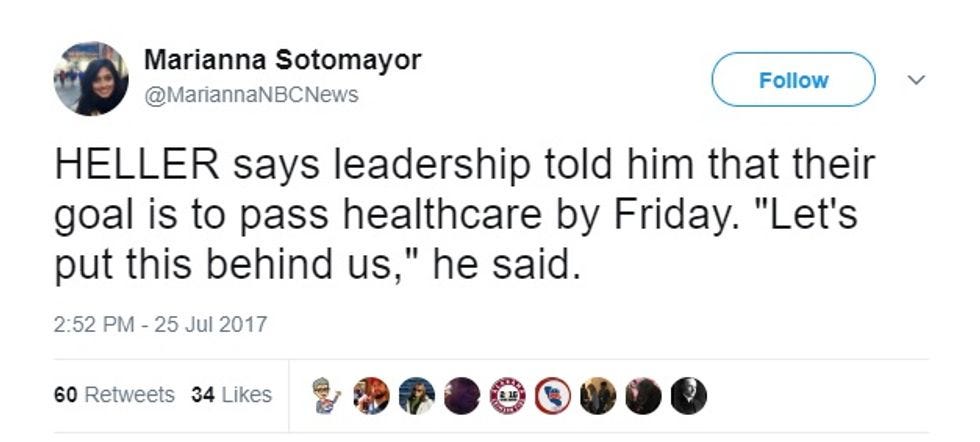 John McCain gave a nice little speech about returning to the Senate and hoping that the place would return to "regular order." He said that he would not vote for the current ACA replacement bill unless it's revised considerably. He thinks bipartisanship would be nice. You know what might have forced a return to regular order? Not voting to proceed with debate on this utterly irregular process. Christ. We thought for a few minutes at the beginning of the speech that McCain was announcing his resignation, because he was sounding so damned valedictory. Coming back from cancer treatment to leave 20 to 30 million people without healthcare would have made one hell of a legacy. We're not going to trust him to actually make this bill substantially better.