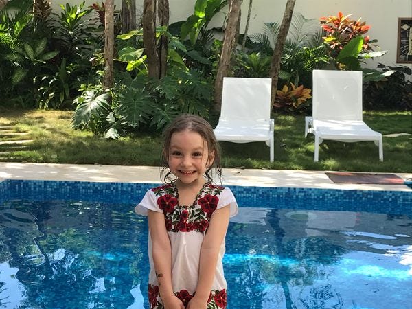 Now, as promised, here is our bebe Mexicana, doing bebe Mexicana things, like eating ceviche and drinking pina coladas (wait, that was me) and mostly never getting the hell out of the pool. I would like to personally thank you for helping us pay our writers and ourselves a living wage and also vacation, we fucking needed it and now I WON'T DIE.