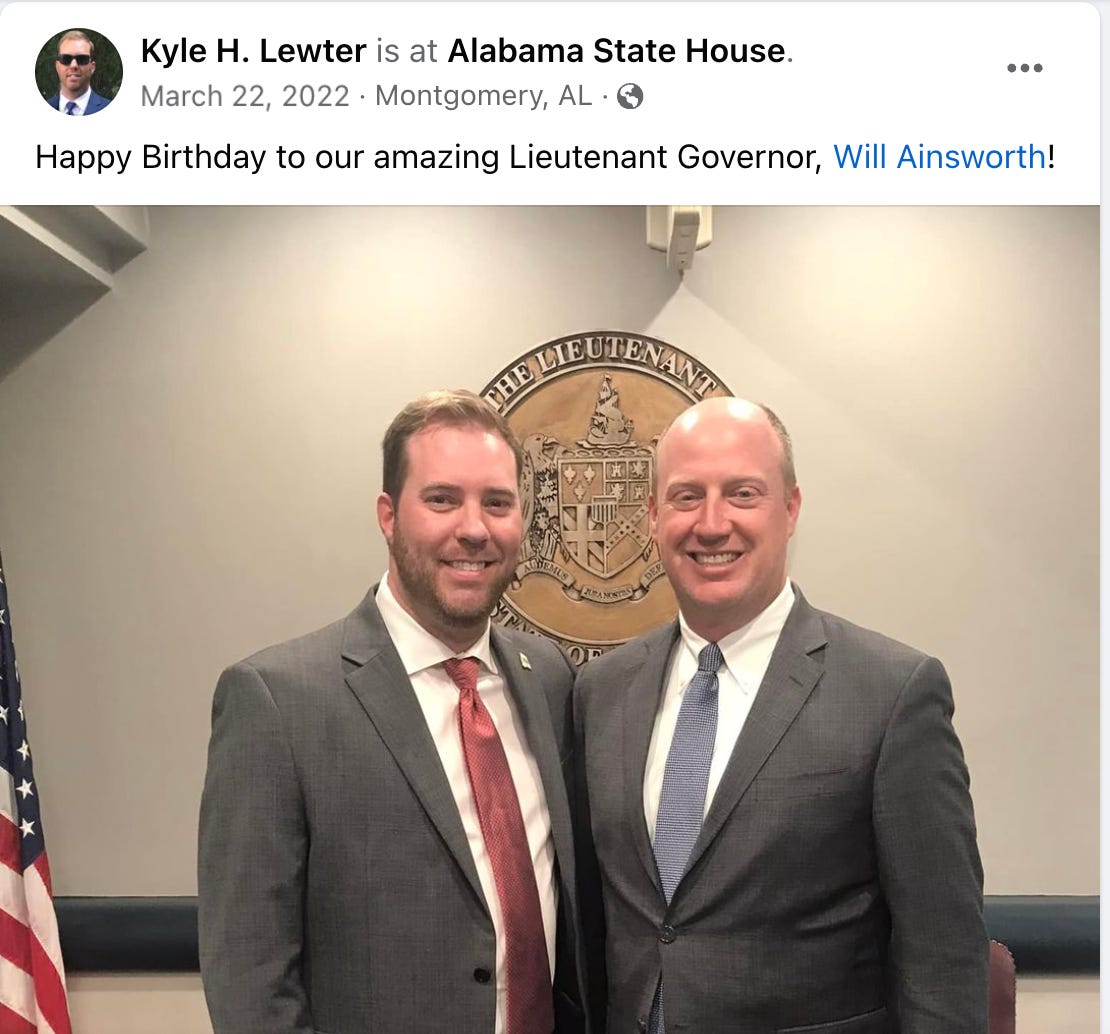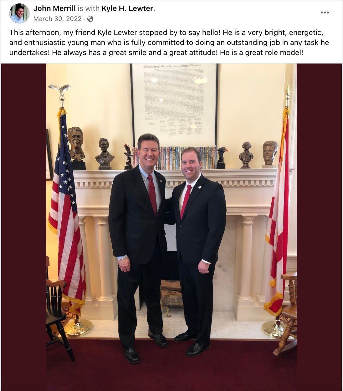 Former Alabama secretary of state John Merrill thought very highly of Lewter, called him a role model and “a very bright, energetic, and enthusiastic young man who is fully committed to doing an outstanding job in any task he undertakes!”