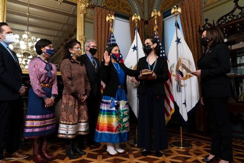 Here's Sec. Haaland yesterday, at her ceremonial swearing-in by Vice President Kamala Harris.