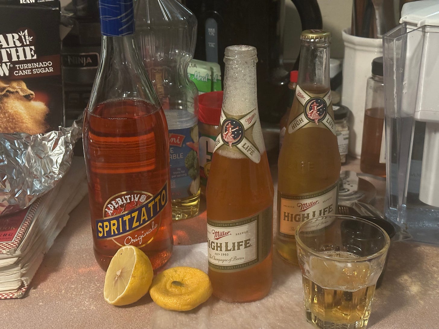 Feel free to heave other aperitivos, or flavored liqueurs of any stripe, into a bottle of Miller and see what you like. Pasta-themed names for such cocktails seem to be required for such riffs. One bar made a version with Cynar instead of Aperol and called it a “Linguin.” I’ve got some leftover Pimm’s lurking in my liquor cabinet. Let’s see if a “Raviol” is any good.