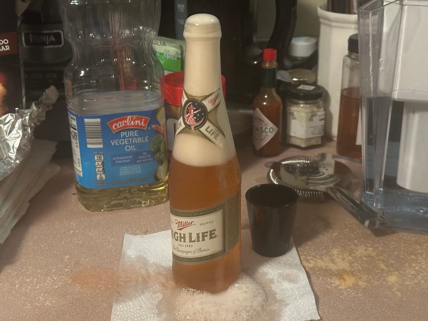 Miller High Life: It’s not strictly necessary to hunt down this beer for this drink. Corona would be perfectly fine, as would any other Mexican-lager style beer. I do think the clear bottle makes the drink look better, but don’t let that stop you from experimenting.