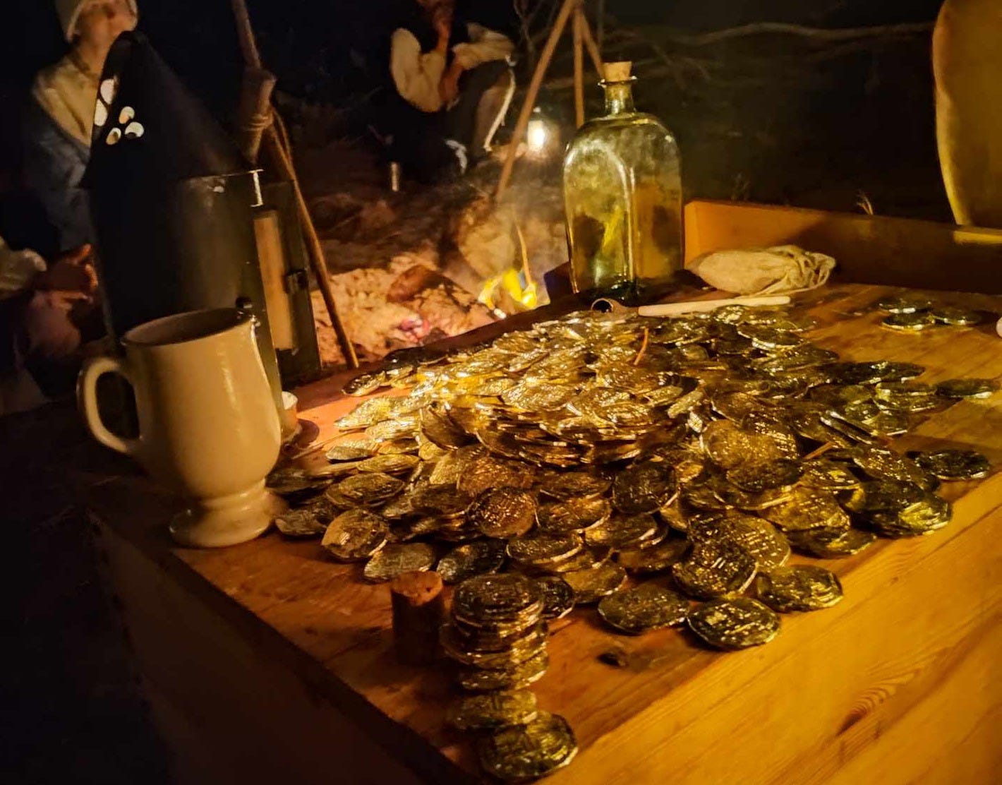 A: Two days ago, on Wednesday, I flew from Cleveland to Tampa and met up with some internet acquaintances. They drove me to our Captain’s home, where I fixed up my clothing and helped pack. On Thursday at 4 AM, we drove for a few hours to meet a charter boat. We left all our clothes from 2026 behind and dressed as sailors from 1717. We set up camp, made some introductions, and began to tell the story of our lives as sailors on the Scavenger, a twenty-gun pirate brig, currently grounded for her annual cleaning in preparation for a season of piracy. We’ll be playing dice and cards, standing watch, drinking, smoking, and debating our course of action for the year. (1717 is a high point in pirate history; Blackbeard takes command of Queen Anne’s Revenge this year. He’s hunted down and killed in the fall of 1718. The chance that we’ll all go down in a blaze of glory is real.) We’ll pack up on Sunday. I’ll be killing time in Tampa for a day and a half before flying home.