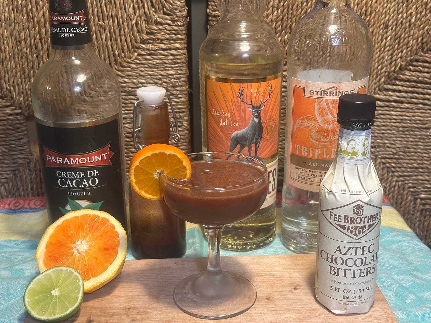 1 ½ oz Cazadores reposado tequila1 oz chocolate orange agave syrup