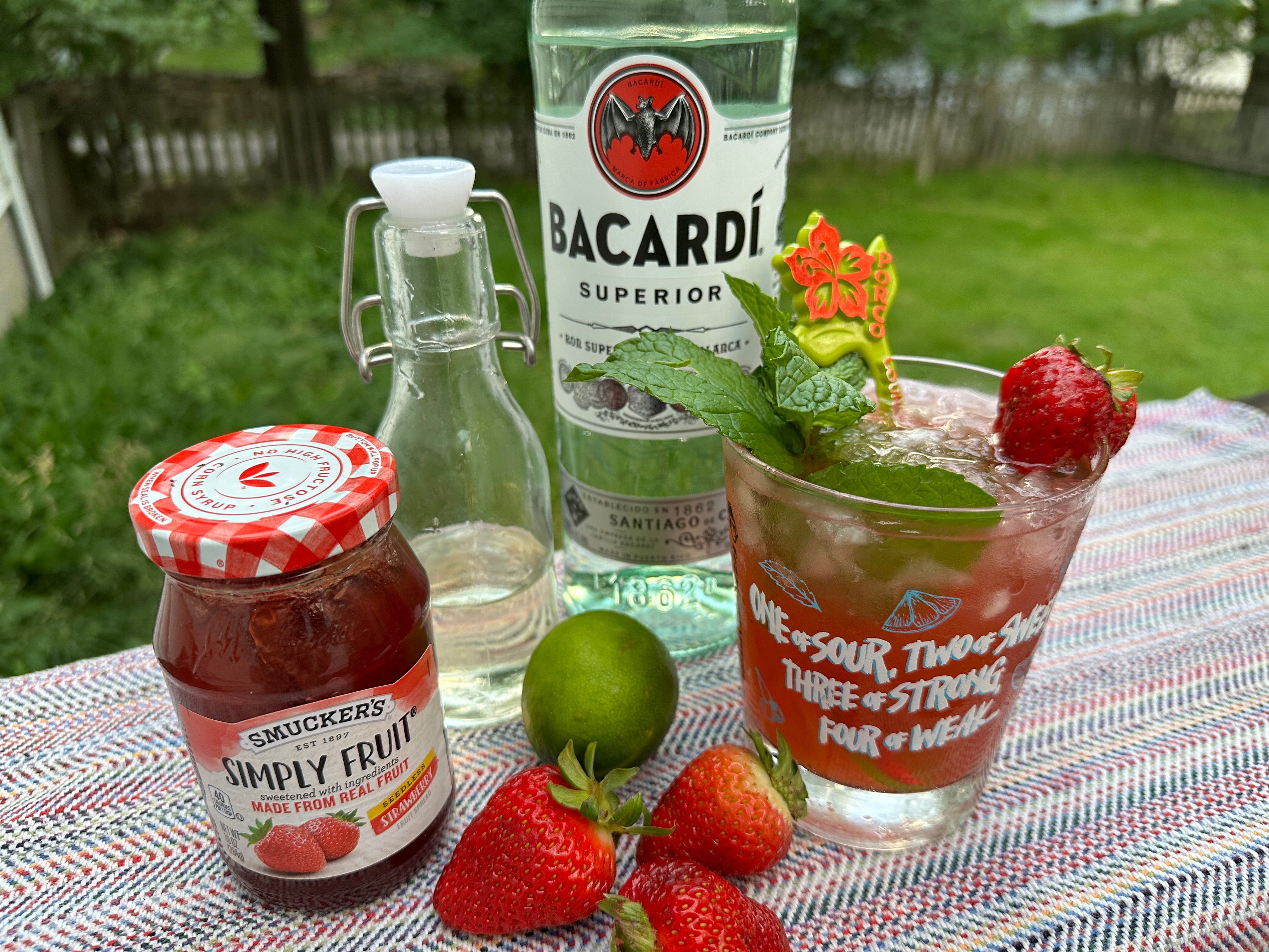 Garnishes: The mint is absolutely vital. The scent of fresh mint defines a mojito more than the muddled herb. The strawberry is nice, not strictly necessary, but who doesn’t like a fresh strawberry in summer?