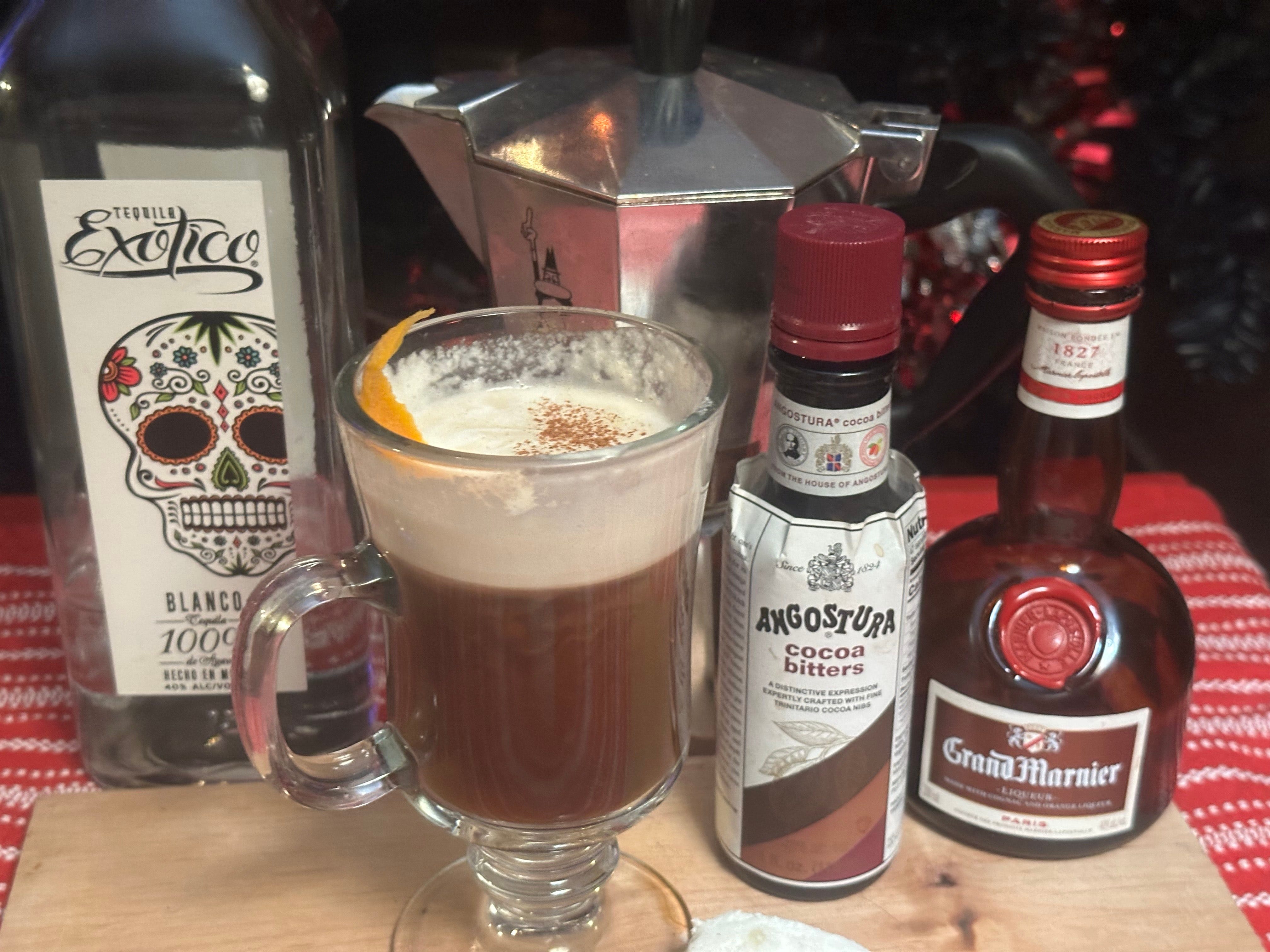 Paul Ramirez’s recipe called for a quarter ounce of Fernet Branca instead of Grand Marnier, and I badly wanted to like that version. I adore Fernet Branca. But the more I tasted the cocktail, the more it seemed like the Fernet was there to be edgy instead of comforting. Adding whipped cream softened the cocktail considerably, but in the end I decided to make a safer choice and swap in a classic orange curacao. A hot tequila drink is already a bit of a sell; adding menthol bitterness was a bridge too far. Try it both ways if you’re curious … or swap in another liqueur if you’d prefer.