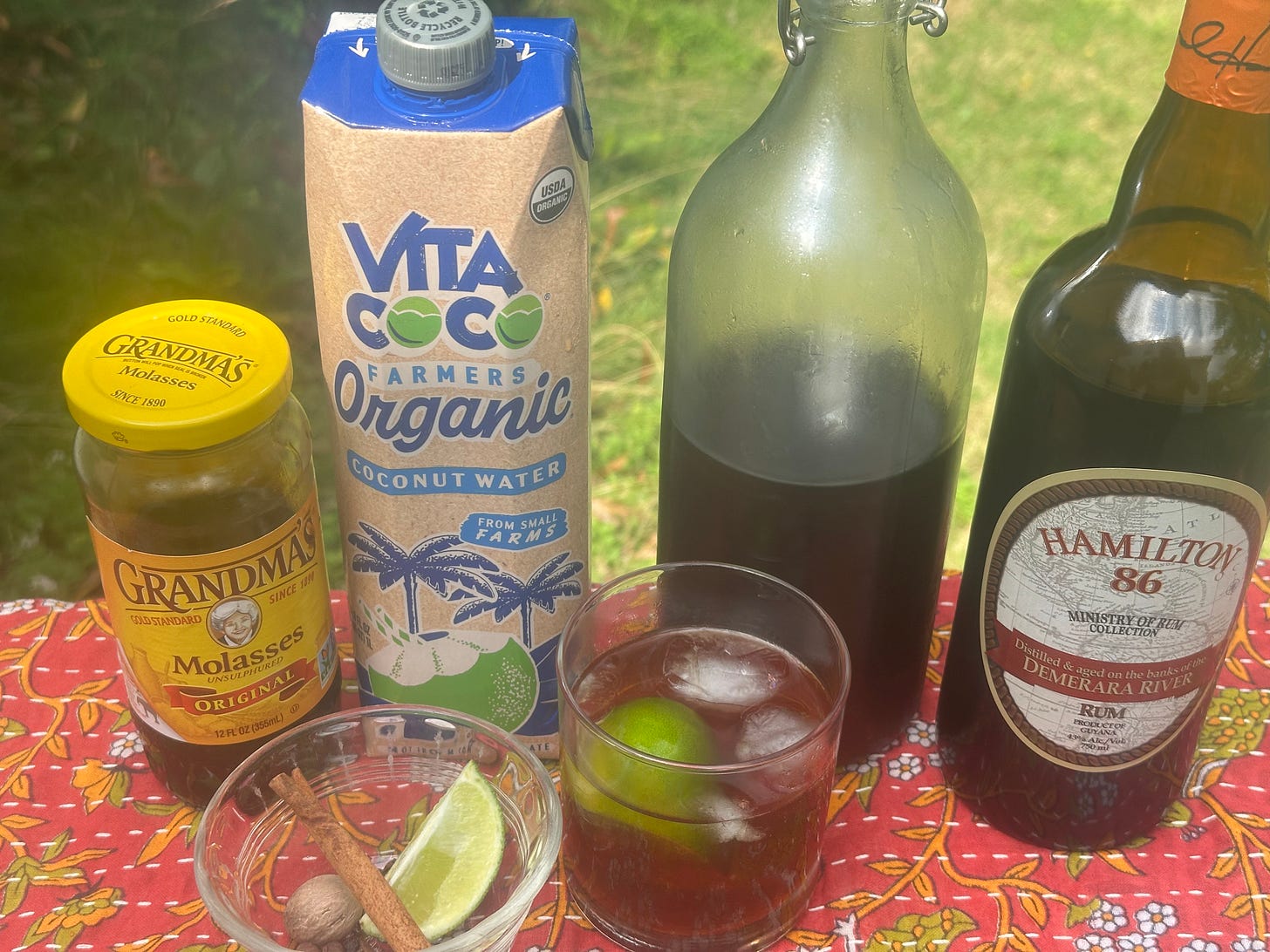 Coconut Water: I haven’t used coconut water as the liquid base for a syrup to date, and I’m intrigued by the result. The molasses and spice components of the syrup overrun most of the coconut flavor, but I still get a rich mouth feel and a hint of coconut from the finished product. I wouldn’t be averse to adding more coconut water to the final drink.