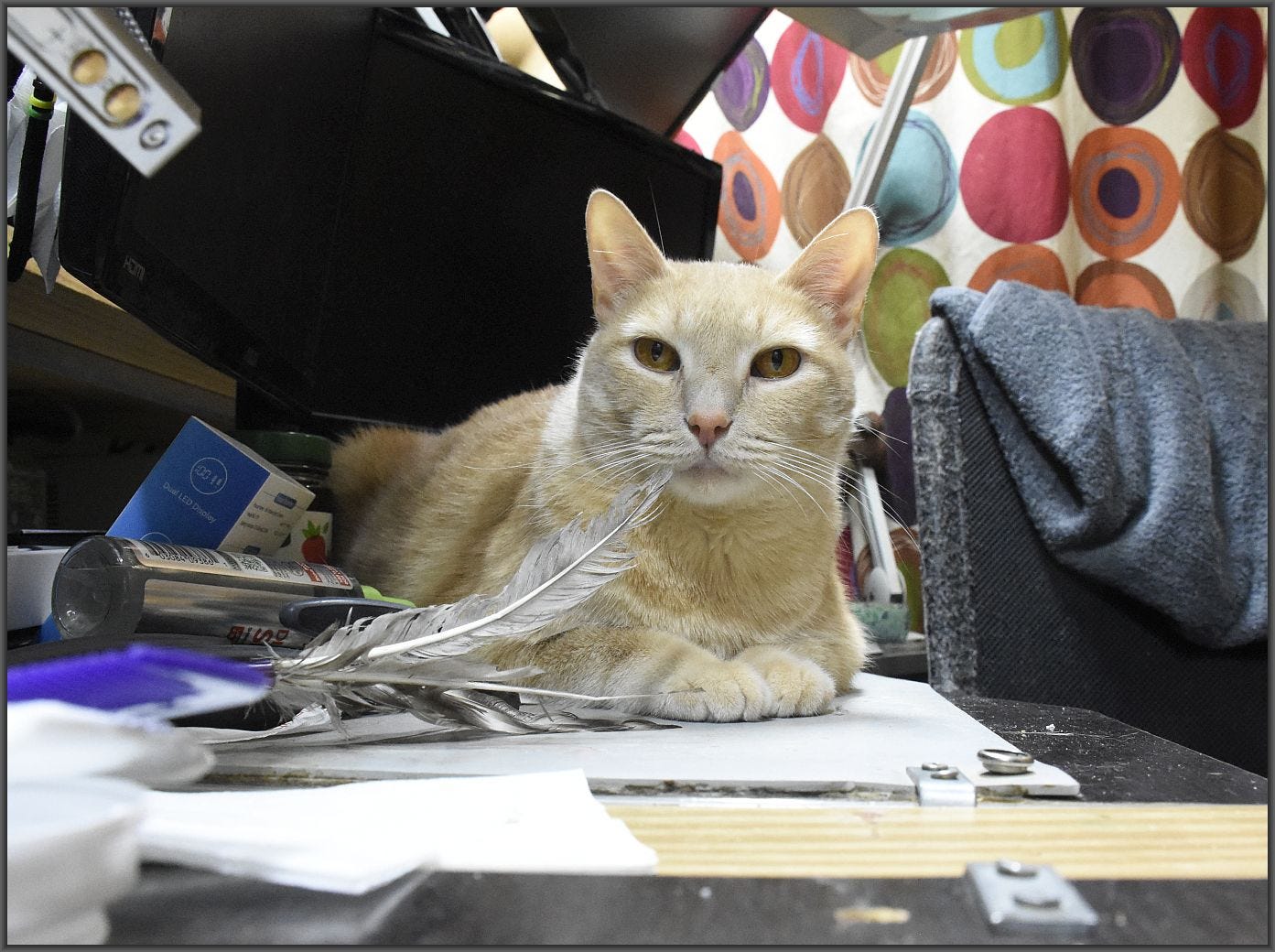 Ended up with a drill attached to my head today. Handy scissors at the work bench freed me. Pony tail got fed into the vent, wrapped around the armature and all work stopped. Have to watch out for that I guess.