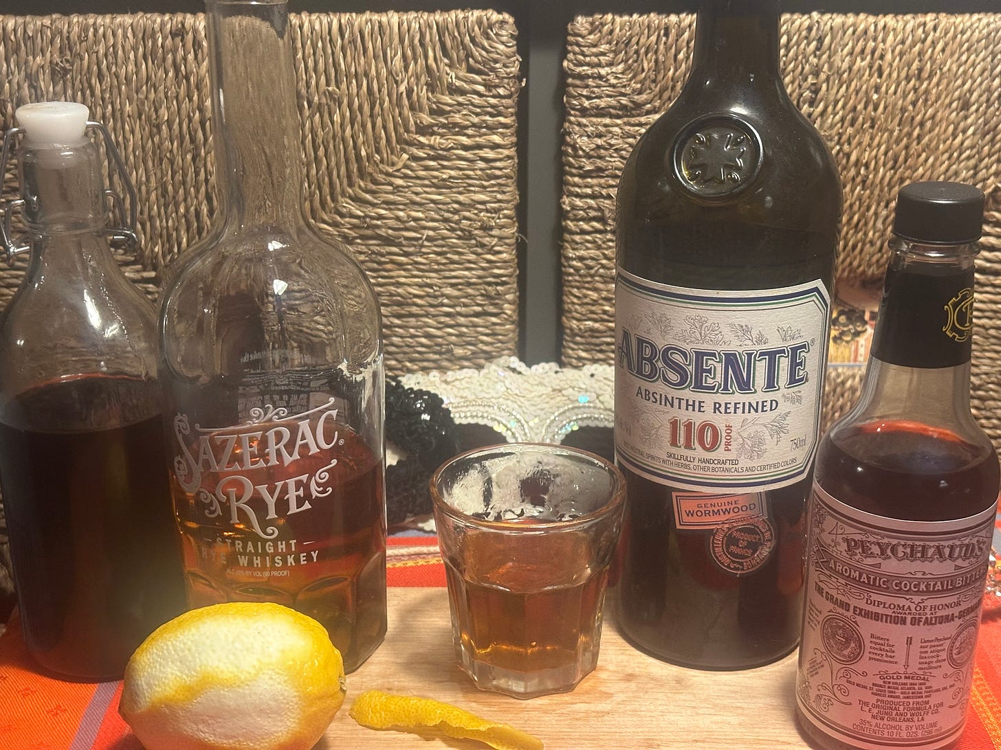 Greetings, Wonketeers! I’m Hooper, your bartender. This week, I decided to re-examine a cocktail I first discussed years ago. I’ve done some research and some tasting, and I’ve changed my conclusions about what matters in this drink. Mardi Gras season is just about ready to begin, and the city of New Orleans has something to say about getting through hard times. Laissez les bons temps rouler, y’all. Time to make a Sazerac, Tujague’s style. Here’s the recipe: