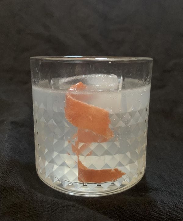 In this case I'm using Watershed Distillery's Four Peel Gin . Lemon, lime, orange, and grapefruit peel are front and center in this wonderful spirit out of Columbus, Ohio. The juniper is practically nonexistent. I'm just a little bit obsessed with this spirit right now. But realistically, I would be surprised if you can get it outside of the Midwest. If you can't, I'd urge you to hunt through the shelves of your local liquor store and find out what someone near you is making. Modern American gins are so varied, and so amazing. It'd be a shame if you turned your back on the category based on old, tired Beefeater.
