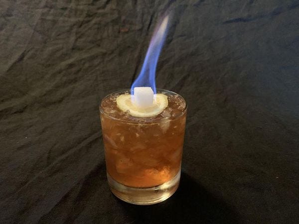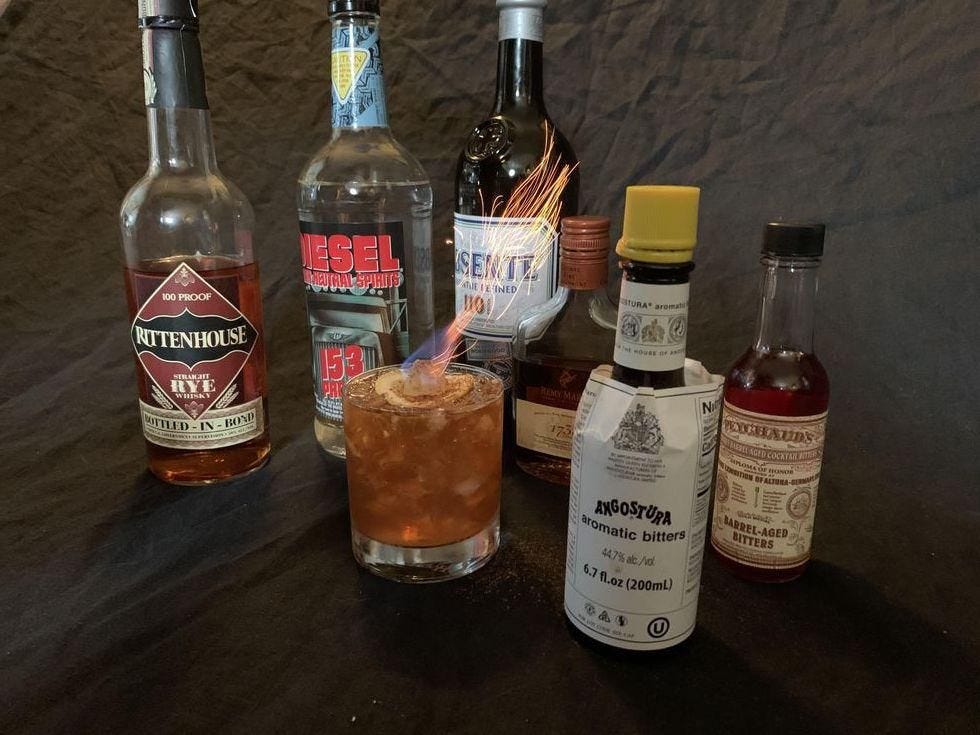 Greetings, Wonketteers! I’m Hooper, your bartender. This week calls for a classic cocktail that’s strong, spicy, and spectacular. I decided to take the revered Sazerac cocktail from New Orleans and kick it up a notch with a dangerous garnish. Let’s make a Molotov!