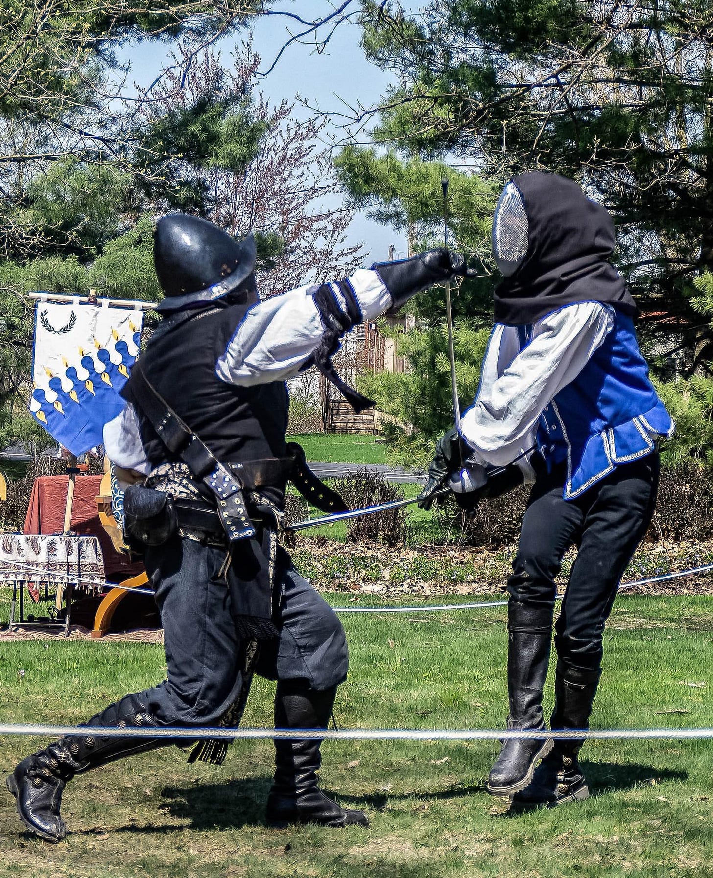 So, let me get back to that failed assassination attempt. Back in April, a young man named Giovanni shows up at a local tournament. He’s a high-strung, adventurous soul, who lived in our local barony for a while before moving to AEthelmarc, the neighboring kingdom. While there, he studied with Don Niccolo, a peer of mine in the study of the blade. (Yes, this is all going to sound a bit like a Three Musketeer novel at times. Roll with it.) Giovanni issues me a challenge, with an offhand comment - “Niccolo told me to stab you for him.”