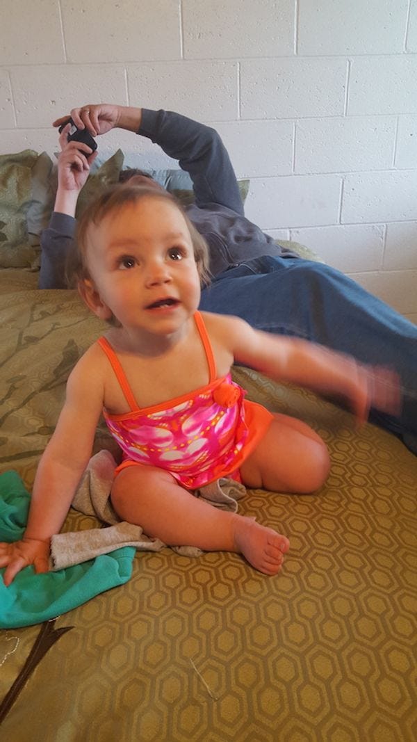 While you are pulling out your wallet, here's one more pic of Donna Rose The Wonkette Baby, bein' cute. You may have seen it before. We do not care.