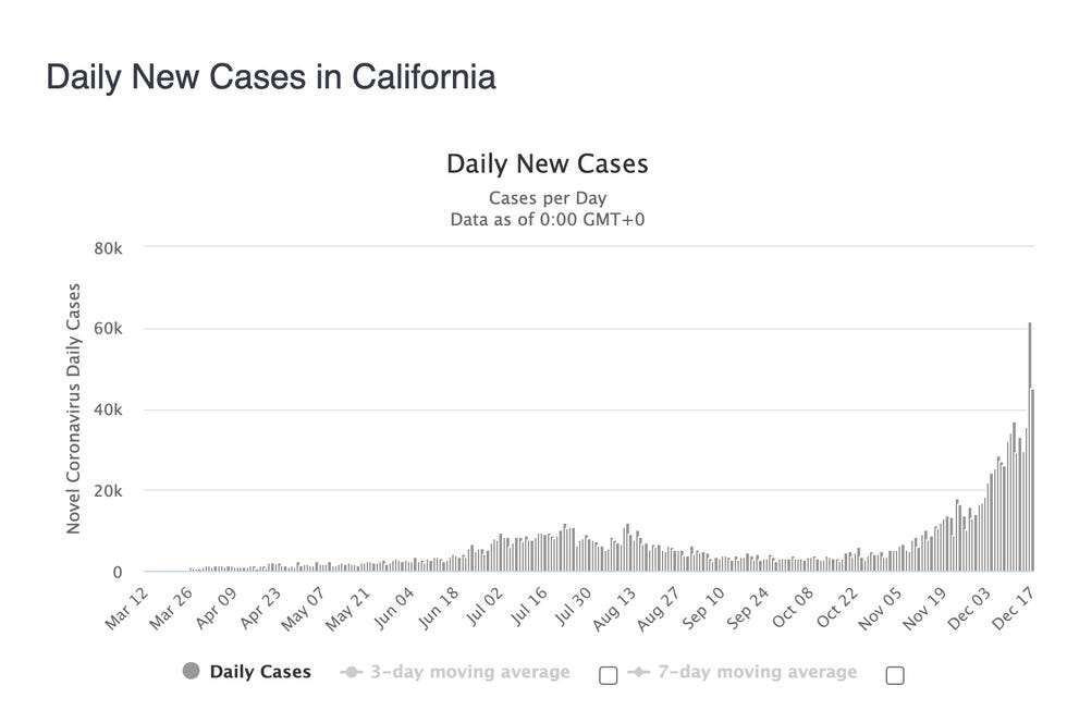 California is having a difficult time. It's had more cases of COVID-19 than any other state in the country, and trails only New York and Texas in total deaths. In fact, just two days ago, the state confirmed more than 61,000 cases in a single day.