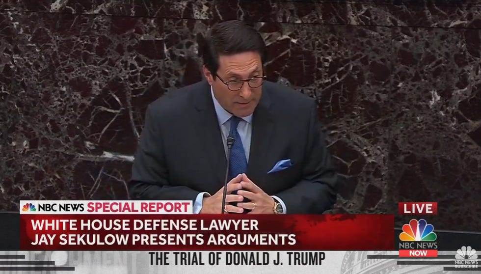 2: 04:Sekulow keeps saying he's not going to go back over their very extensive full-throated defense, which has #factcheck been an absolute joke so far. We agree, please sir, do not dwell on the nonexistent details.