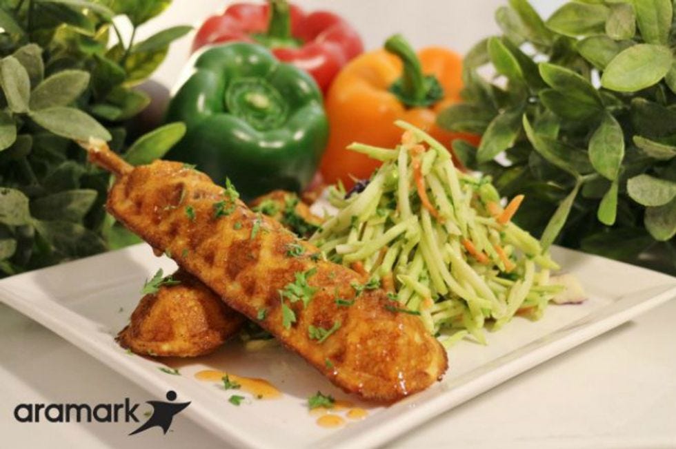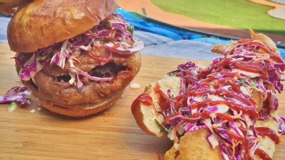 Baseball's Great White North, meanwhile, is serving Chicken & Waffles On A Stick. It looks like it uses a chicken filling inside a waffle casing, which ... oy.