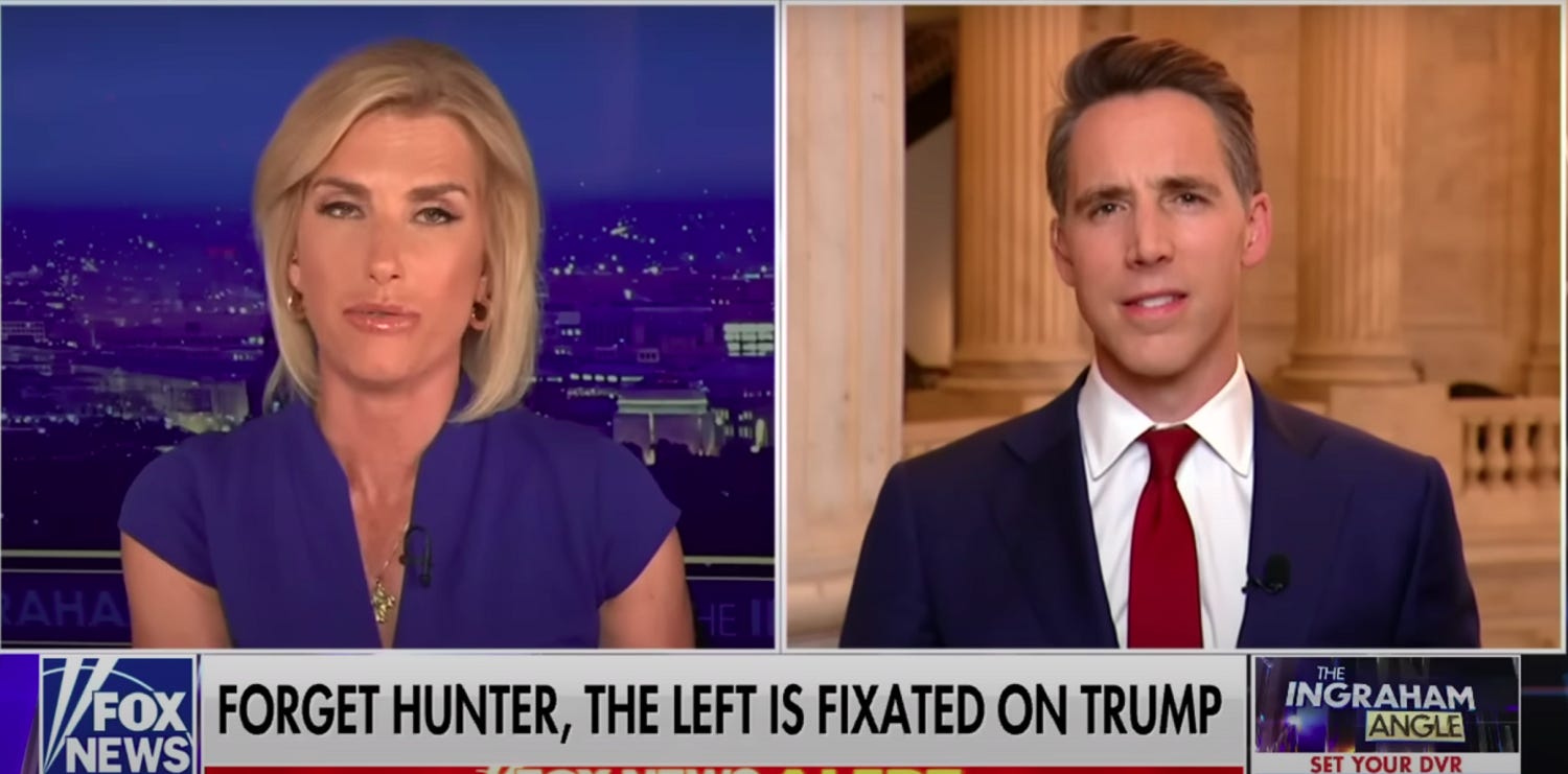 But we would be remiss if we did not at least note that Laura Ingraham invited on Sen. Josh Hawley, the biggest dork to roam Washington DC since Urkel accidentally stowed away on that Amtrak, to pretend that despite being a lawyer and a former law professor and a state Attorney General, he’s more confused about the new Trump charges than a Lhasa Apso with a head injury: