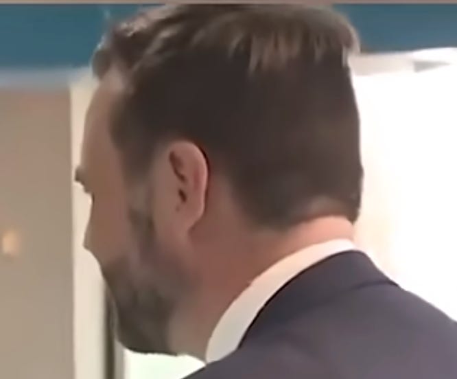 JD Vance doesn’t tick any of those boxes. And despite all the attempts at stern glaring and the chin moss, he doesn’t have a grownup face. He always looks like a toddler wearing a Businessman costume.