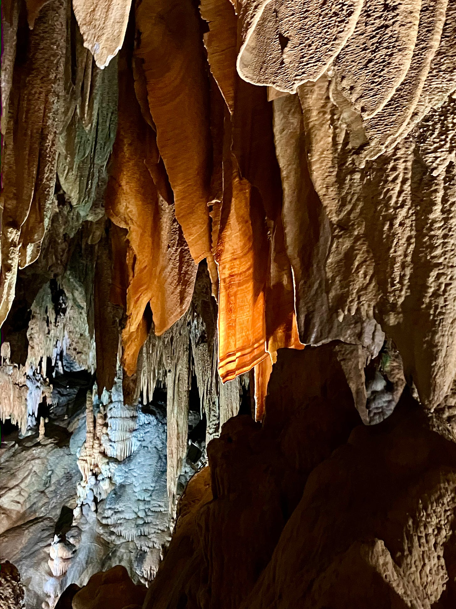 The new lighting in the caverns is beautiful! The stalagmites/tites are translucent when you shine light through them, with any greening is from the heat of the old, hot light bulbs. And Luray Caverns’ Stalacpipe organ is the world’s largest instrument, though it will only play “A Mighty Fortress is Our God.”