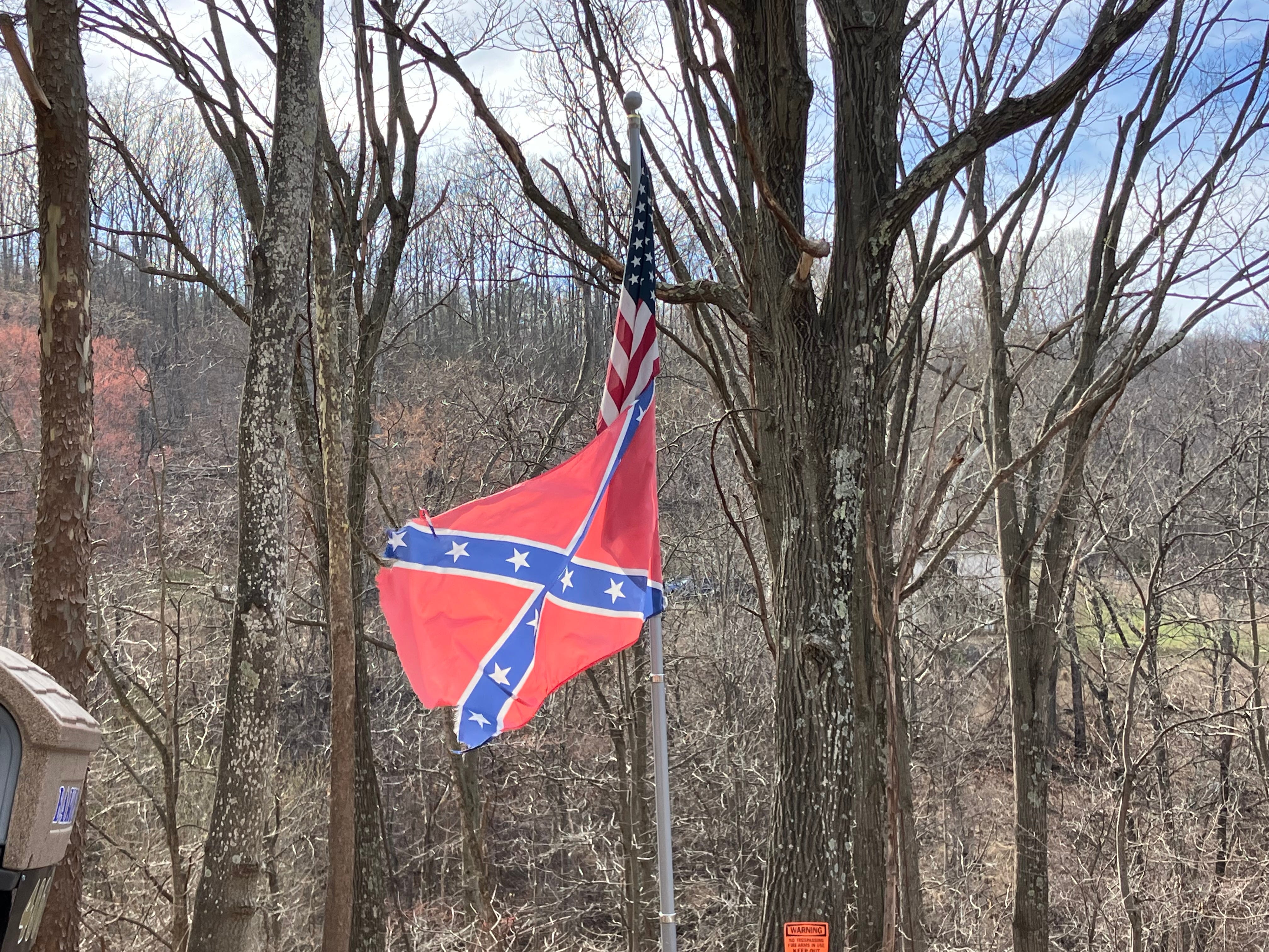 Anyway, so there we were this weekend in Stanley, Virginia, about two miles from that there flag above. Not intending to be going on some kind of Cletus safari, but for the son’s birthday and Appalachian spring. He loves the mountains, and I’m not about to get on a plane these days, so I used one of the many vacation days and some of the salary my wonderful communist job generously provides me for an AirBnb for him, his friend, and our energetic large dog at a secluded cabin at the end of its own half-mile drive, three hours southwest from Baltimore city near Luray, to let them all run free in the budding spring.