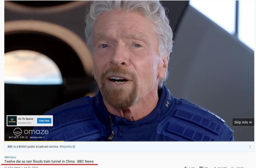 We'll just note that when we clicked on the video, YouTube, apparently feeling a bit ironic this morning, offered up an ad featuring billionaire Richard Branson pitching a contest that will send one lucky winner on a brief trip to the edge of space.