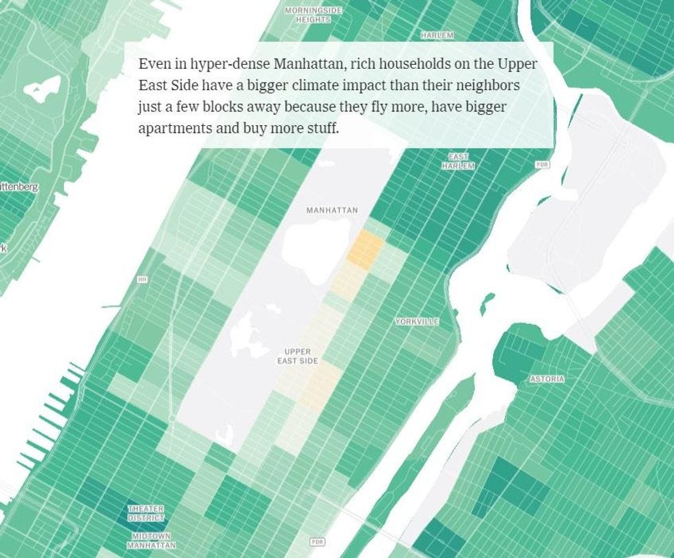Because it's a fun interactive map, the page zooms out to let you see all the high-emissions areas surrounding the city, and also zooms way in to point out that wealthier areas have higher emissions because they consume more: