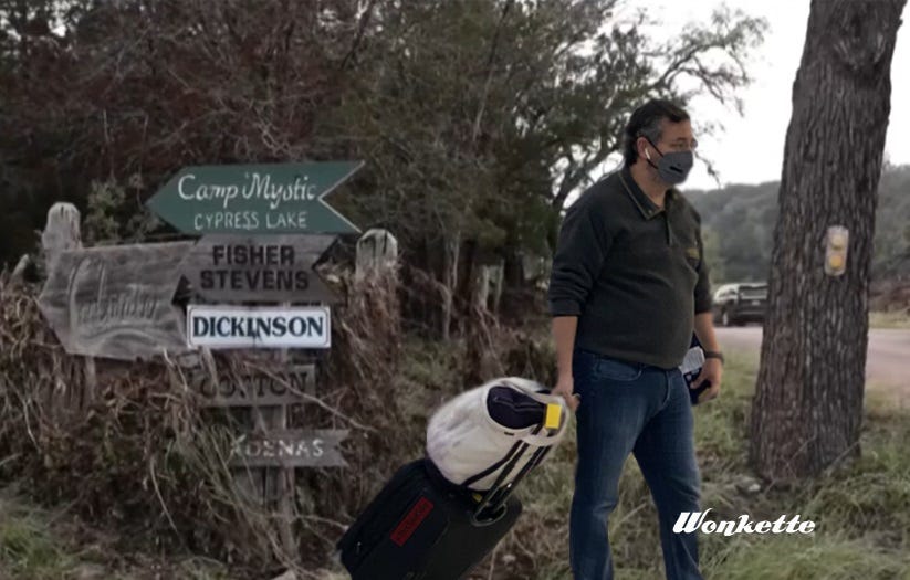 Yr Wonkette is funded entirely by reader donations. If you can, please become a paid subscriber, or if you’d like to make a one-time donation while shouting “Fuck Ted Cruz,” here’s the button.