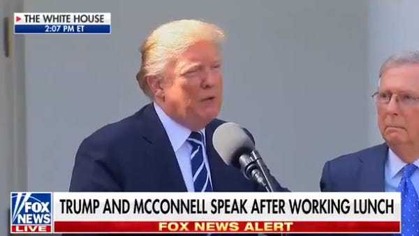 Donald Trump just concluded a completely batshit press availability alongside Senate Majority Leader Mitch McConnell, who is his best friend now, at least until next time Chuck Schumer launches a Snausage into his mouth. Many bullshits were uttered, but the one that's REALLY pissing people off is when he baselessly for no reason lied and said Barack Obama and other presidents didn't call the families of troops killed in action. (!!!!) No seriously, watch it: