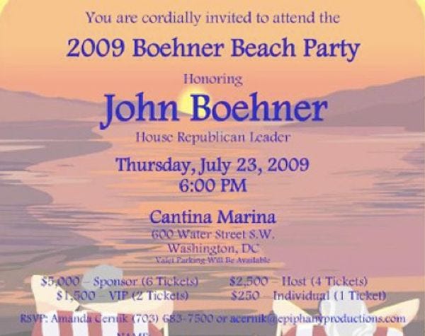 Oh ho ho! Now how did we miss this? How did we miss the BOEHNER BEACH PARTY? Must've been one sloppy, sloppy meat market... for orange people. [ Think Progress ]
