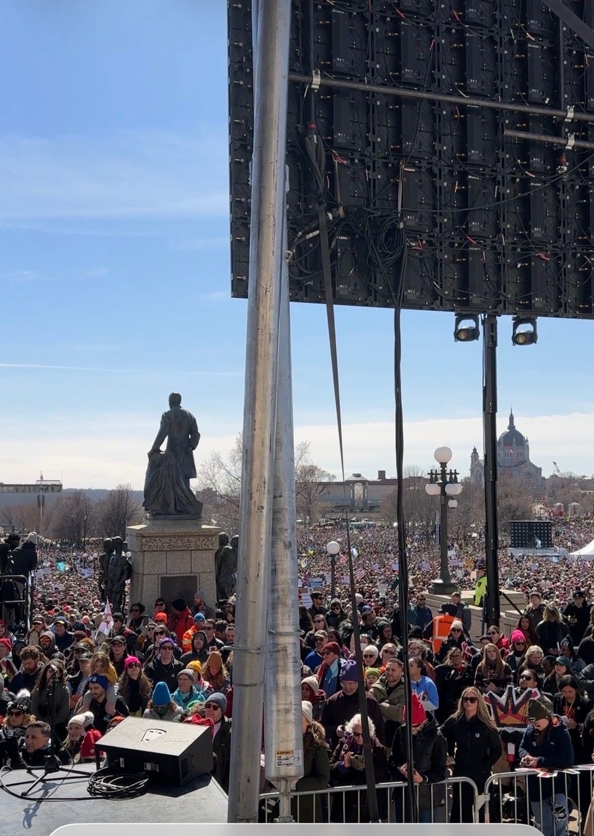 I’m from, and still live half the year, in Minnesota. I was honored to have been asked to host the first hour of the flagship No Kings rally in St Paul. As I stood on the steps of the state Capitol, in front of 200,000 attendees, I looked into the crowd and imagined what they’ve been through and all the ways they have shown up for their neighbors.