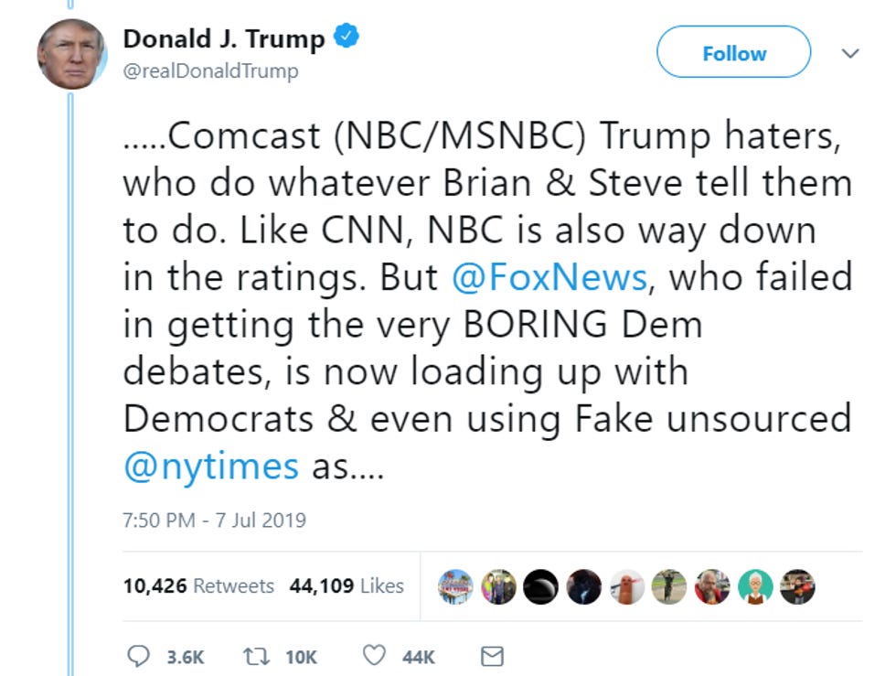 Donald Trump is very upset. After regaling a wet audience full of nobody important on the Fourth of July with tales of America's heroic airport conquests in the Revolutionary War, he went off to do whatever he wants, with nobody who loves him, which means his sadness and frustration came out via Twitter, his only true friend.