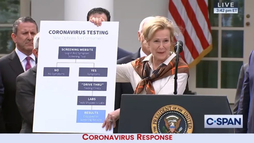 As the Times reports, when Trump made his Friday announcements and Birx held up Jared's science fair project, Google was like WHOA HEY WAIT, THE FUCK?