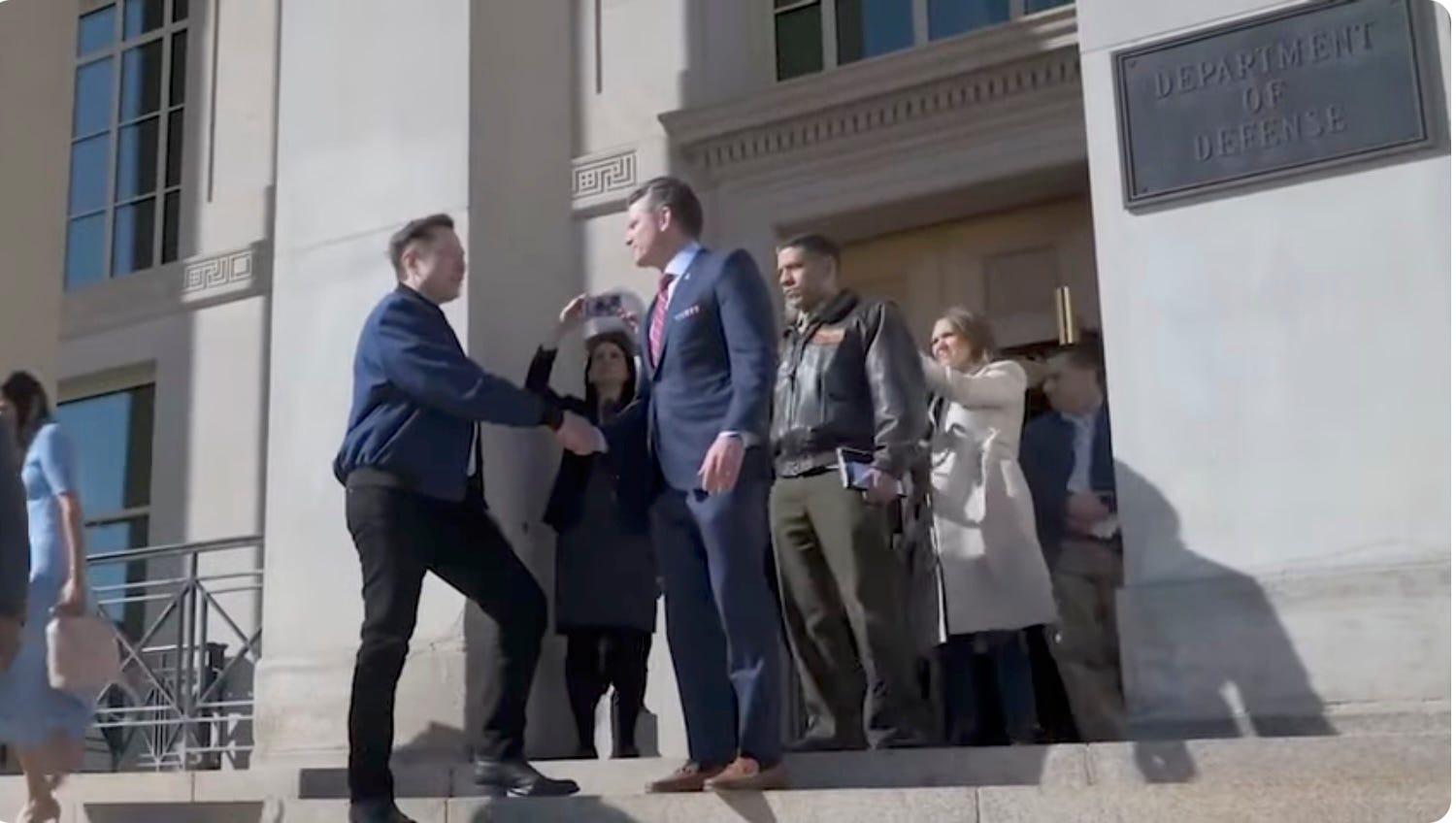 And Hegseth claimed that Musk was at the Pentagon to talk about DOGE.