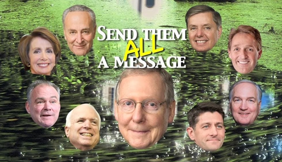 In addition to the ad from McConnell's PAC, Strange also has his own ad in which he says he chats with Jesus every day and promises to Drain The Swamp, which is why he's the target of nasty "Never-Trump insiders" who want to keep him from fulfilling his destiny: