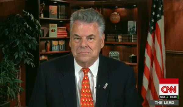 Did you see the one we put in bold print? Because that is who we think it is. Unless there's another person on that list besides Peter King of Long Island who you think is A) THAT CUSSY and B) on TV that much, constantly going back and forth between being supportive and also looking like maybe he might vomit at any given time. For what it's worth, NY-02, which King has represented for years, went 53-44 for Trump, so it falls squarely into the "he's scared he's going to lose but Erickson thinks he's safe" category. King endorsed Trump reluctantly and without "enthusiasm" when it became clear Trump had the momentum to win the nomination, so he fits that part of Erickson's description too.