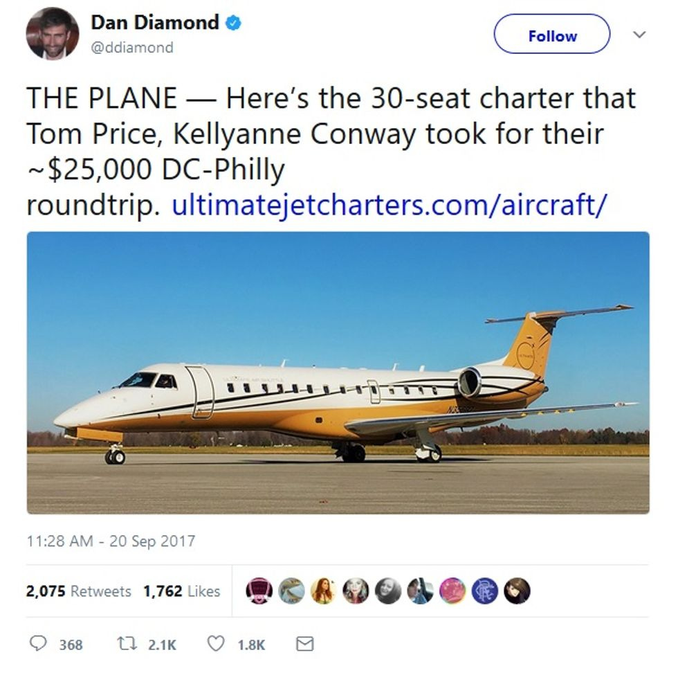 The story, by Dan Diamond and Rachana Pradhan, details just a single week of Price's pricey travels by chartered jet, and notes that sources suggest it's his preferred form of travel, at least when a gilded sedan chair carried by Nubian eunuchs isn't available: