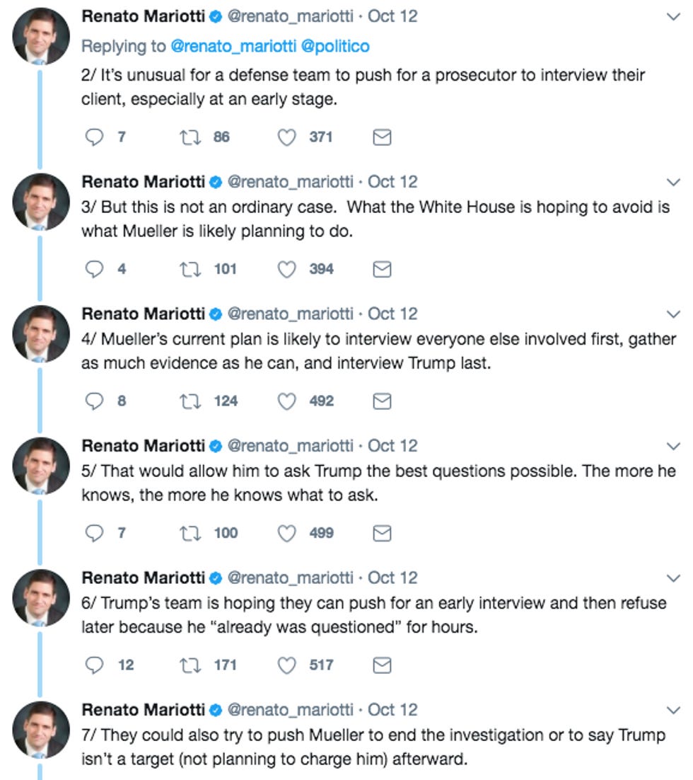 But NFW that guy is dumb enough to leak to Politico that Donald Trump wants to sit down with Bob Mueller mano-a-mano to hash it out.