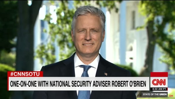 The United States is burning, literally and figuratively. After the MURDERof George Floyd at the knees of Derek Chauvin and the inaction of three former "good cops" who stood by as he was killed, protests have raged across this country ... and around the world . Making matters worse is the incompetent resident of 1600 Pennsylvania Avenue, Trumpito, whose combination of incompetence and racism has failed to provide either leadership or comfort. That's why, aside from his unhinged tweets, Trump sent his fourth National Security Advisor Robert O'Brien to the Sunday shows to try to spin for him. The results were ... well they weren't great, Bob!