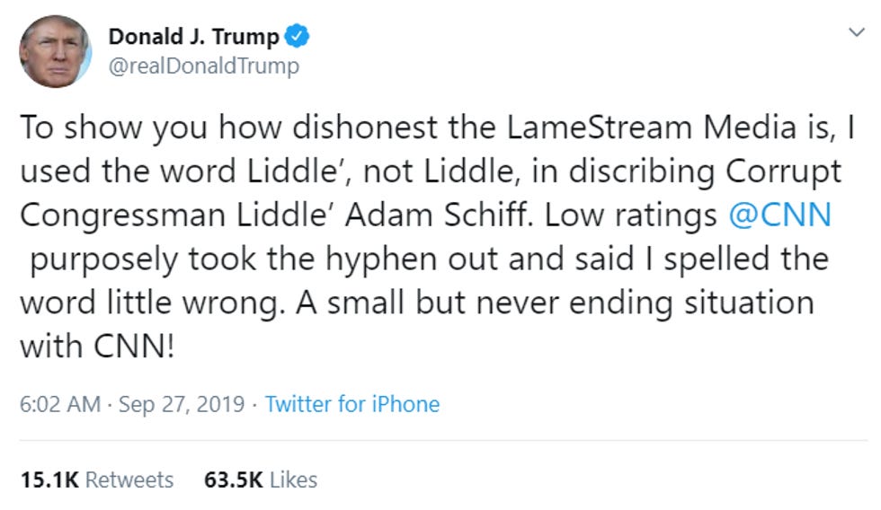 Obviously we could not let this day pass without acknowledging the new best stupidest Trump tweet ever sent, and it serves as a nice springboard for a post we've been wanting to write this entire godforsaken week. We've been so busy with the actual mechanics of the Trump Ukraine scandal that's getting him impeached, we've had zero time for the funny palace intrigue stories that have been coming out all week.