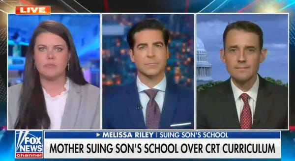 During her Fox News interview (of course), Riley insisted her son was nice and docile before the Albemarle School District exposed him to voodoo “critical race theory,” and now he’s sullen and difficult. Perhaps she’s never met a teenager before, but it’s possible that puberty’s the true culprit here. Before she blamed the school, she could’ve at least checked if her son had started wearing a mood-altering red kryptonite ring.