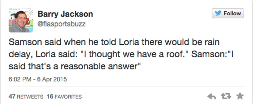 Ladies and gentlemen, the only owner in pro sports who cares so little about the product he's selling that, even though he spent over a decade lobbying for government funding that will eventually cost Miami-Dade taxpayers $2.4 billion by the time the bonds are paid off, he isn't totally sure whether they made the now 3-year-old stadium domed or not. He also has apparently never attended a game and looked up at the damned sky.