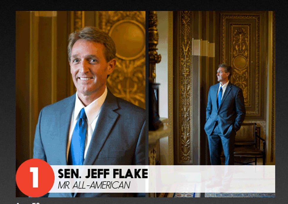 So The Hill did its Most Beautiful People Thingy, and they picked Jeff Flake to be the most beautiful person on Capitol Hill. That is weird right? Like, that is him, above. Um? The Hill is obviously staffed by sexless robots -- not the good sexy robots like Tina, or John Thune. We mean really. No Bamz? No Mrs. Bamz? No sultry Betsy Rothstein? No Old Handsome Joe Biden? HANDSOME IS RIGHT THERE IN HIS NAME!!! But the most shocking omission of all is ...