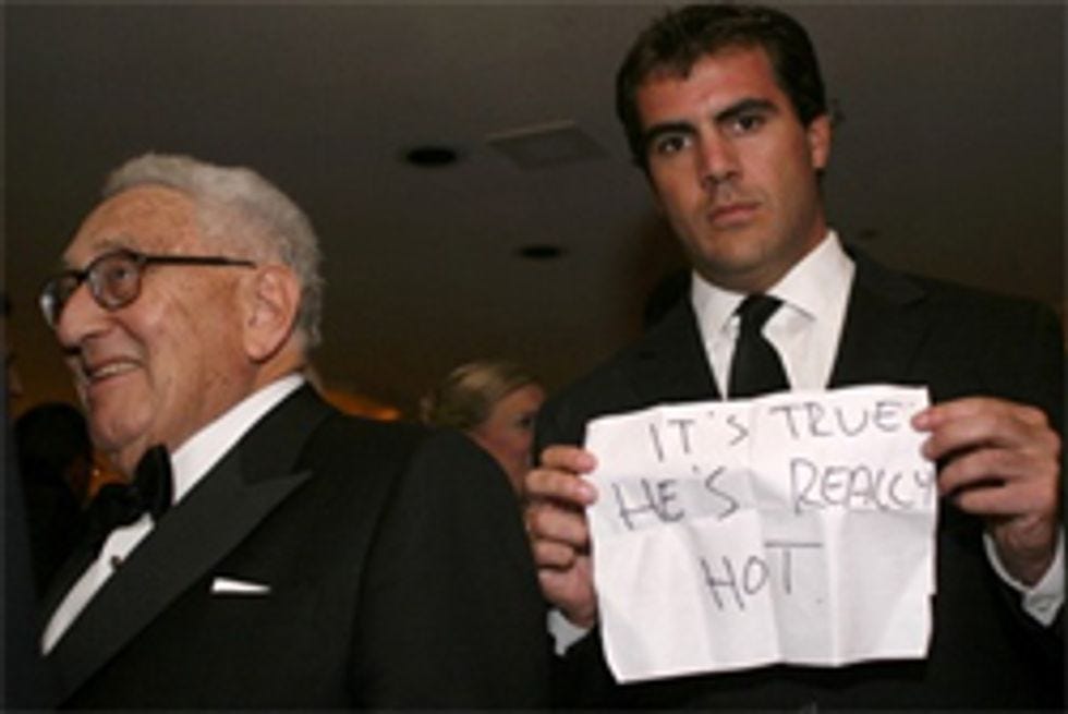 Local media insider blog FishbowlDC for the past few weeks has been holding its annual "Hottest Media Types" competition and yesterday, after 512 nominations, intense voting, you name it, they announced the winners. And WOW, we knew the Washington press crowd wasn't exactly a model shoot, but... seriously? Has it always been this bad? For what it's worth, we think it's a crime that a certain someone didn't make the cut. He's a known slut, and he happens to be the editor of FishbowlDC itself: Patrick Gavin, seen here mocking poor old Henry Kissinger in a Wonkette archive photo. Gavin is always drunk and unprofessional and we have more photographic proof of this that we've been using as blackmail for months. Well, he stopped paying us a week ago, so here goes.