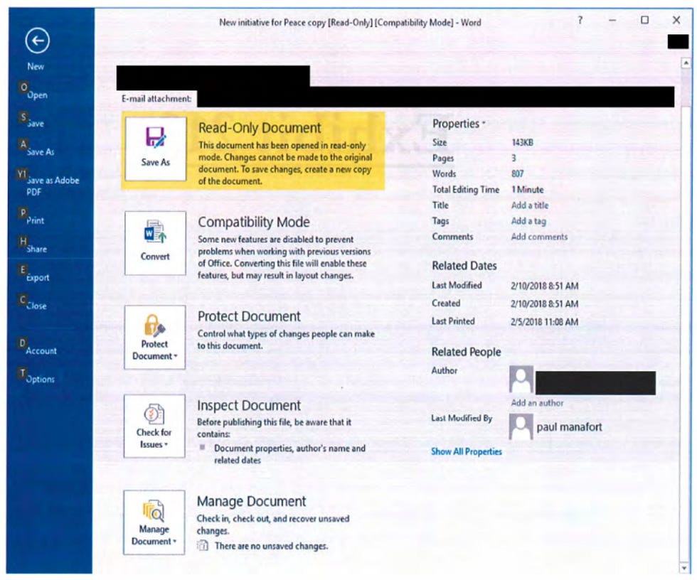 There will never be a redaction fail like Manafort's lawyers last week -- we can just retire Kevin Downing's number right now. But even Mueller makes mistakes, which is why you can see that Exhibit 213 is a document entitled "New Initiative for Peace." Whoops!